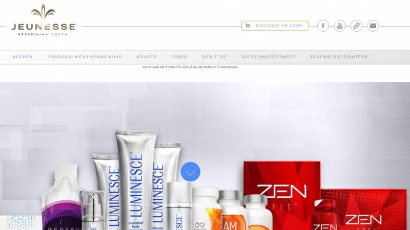 Le site de Génération Jeunesse Global vous propose une sélection unique de produits de beauté, cosmétiques et soins pour le corps et le visage, exclusivement dédié au rajeunissement de la peau sans recourir à de la médecine esthétique. La gamme maison, les produits Jeunesse Luminesce vous est proposée à des tarifs préférentiels et la livraison est offerte pour des livraisons partout en France. Découvrez tous les secrets des professionnels pour rester jeune...